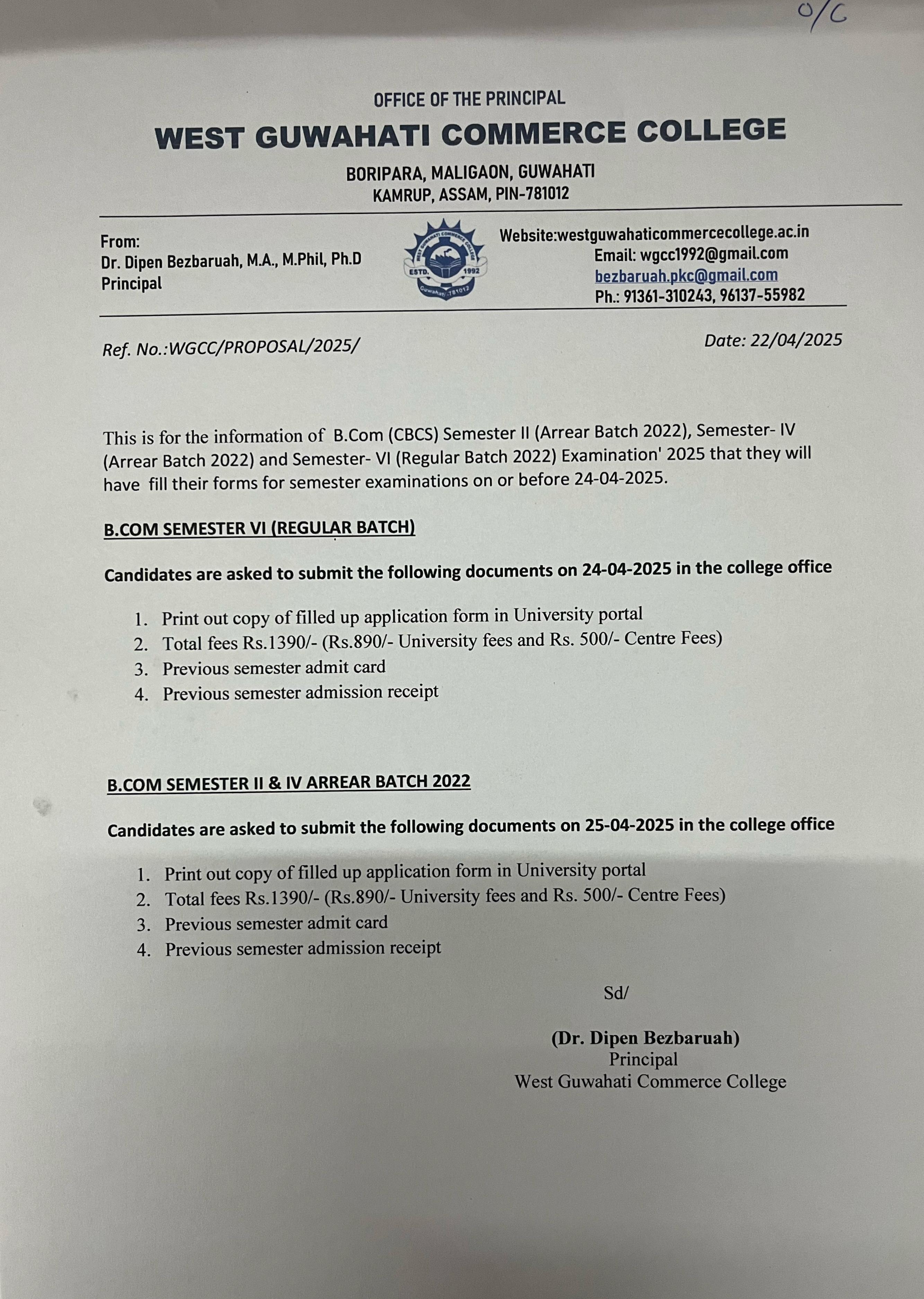 | 48 | HS 1st Year Admission process in West Guwahati Commerce Senior Secondary School is under way. | 2025-04-17 | View File |