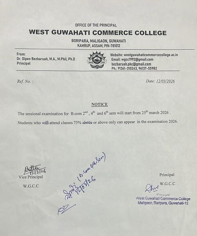 •   Notice for Sessional Examination of B.Com 2nd, 4th & 6th Semester-2026     Click Here