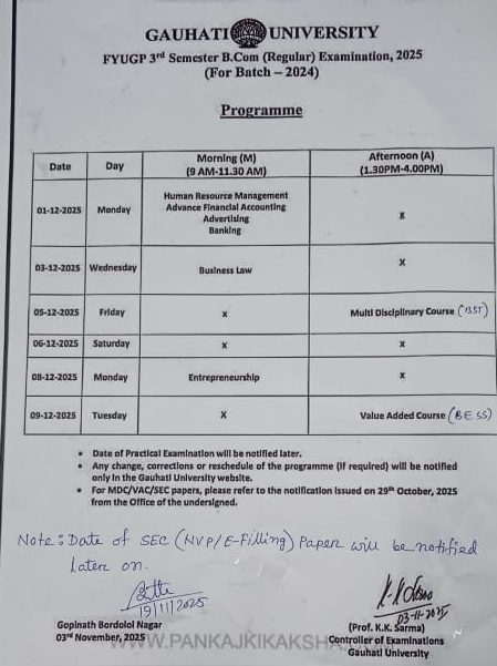 | 39 | B.Com 3rd semester (FYUGP) Arrear, Batch-2023, Programme 2025 | 2025-11-22 | View File |